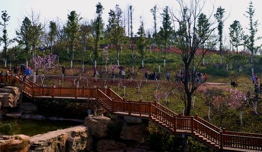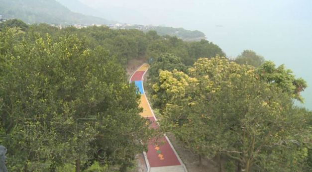 这条彩色长廊镶嵌在当地几万亩红桔林间,