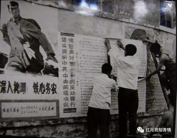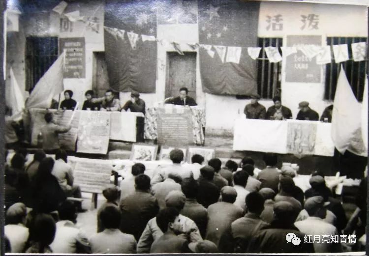 上世纪70年代中后期,为便于对知青的统一管理培养,部分社队改进下乡知青的安置方式,由分散插队改为集中建立“知青点”、“果园”等,将知青集中到一起劳动。图为1977年3月22日长岭公社(今长岭镇)东桥大队农科队下乡知青点成立大会会场
