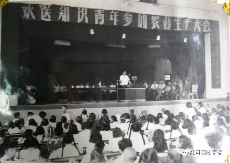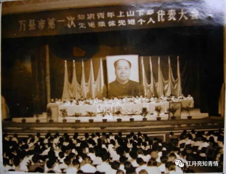 上世纪70年代初,万县市某次欢送暨动员知青上山下乡大会会场一角,会场在万县地革委大礼堂(今名万州大会堂),参加大会的人员为响应下乡知青和家长、已下乡知青代表、接受知青的大队支书代表,以及未下乡知青
