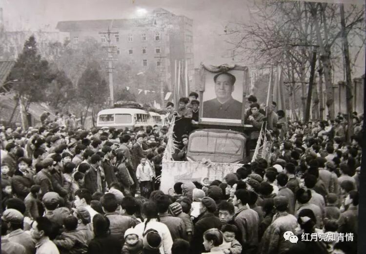 在知青上山下乡高潮中的欢送彩车、乘送车