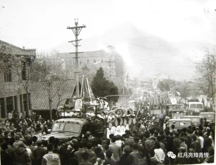 欢送会后,万县市市民举着“欢送我们的先行者”横幅,送别首批上山下乡知青奔赴城口县