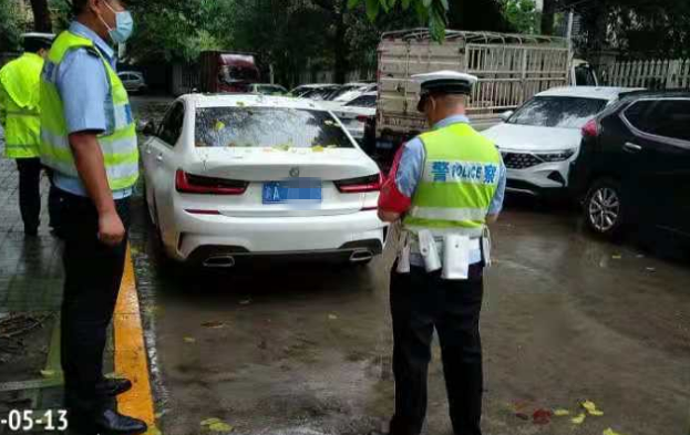 见此,执法人员一一上前,对这些车主肆无忌惮的违停行为,均张贴违停告知单予以处罚。