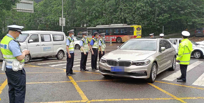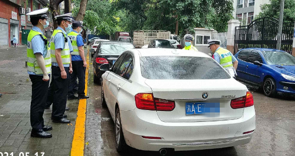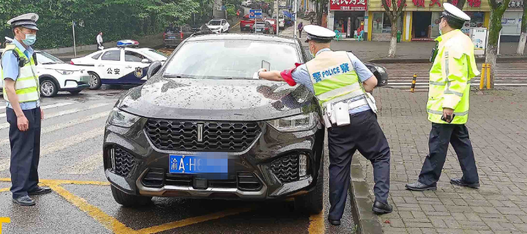 16:20,执法人员在周家坝片区展开巡查经过应急管理局前面路段时,看到该处道路施划有大面积黄色网格线,但3、4辆机动车却依然我行我素地违停在网格线内;此外,在网格线外的一处斑马线上,也并排违停着3辆机动车,如此一来,对过往行人造成极大通行障碍。
