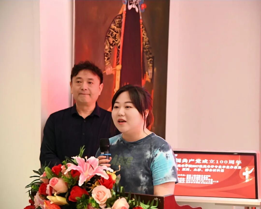 “时光匆匆已四年,我们历经了疫情中的网络上课,感受到在中国共产党的领导下众志成城抗击疫情的伟大胜利,感悟到‘四个自信’内核的伟大力量。所以在我们的毕业创作中自然融进了那份感党恩、念党情、跟党走的激情。” 重庆三峡学院美术学院2017级美术学专业学生代表王清在开幕式发言时表示,此次展出的作品同学们选择了新时代在中国共产党领导下的那些触动和感动学生们的美好瞬间,人民对美好生活向往与追求以及祖国壮丽山河和源远流长的中华优秀文化等为主题。虽然展出的作品还显青涩、不完善、甚至待深入,但她表示将带头以此为契机,在今后的修艺路上努力修炼并践行“以人民为中心”的创作导向,弘扬“中国精神”。