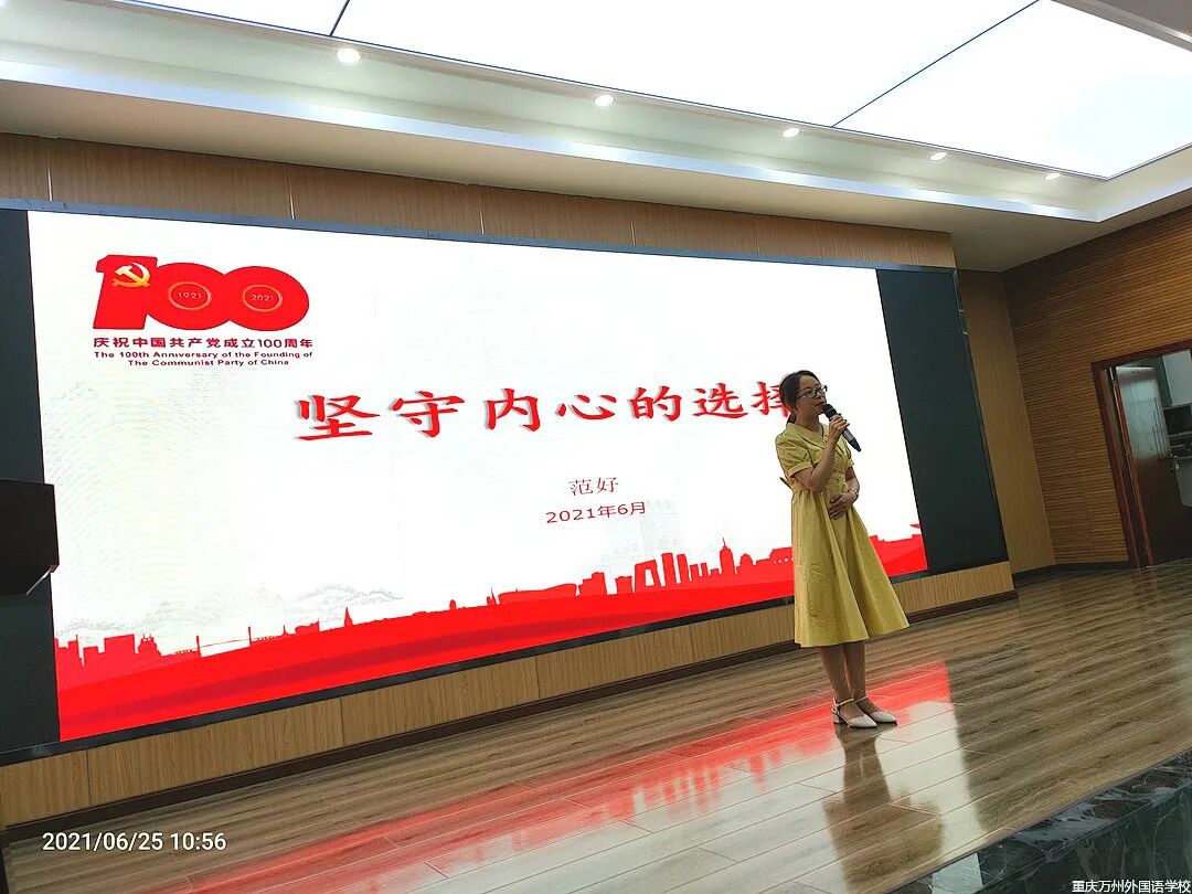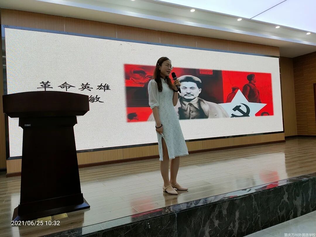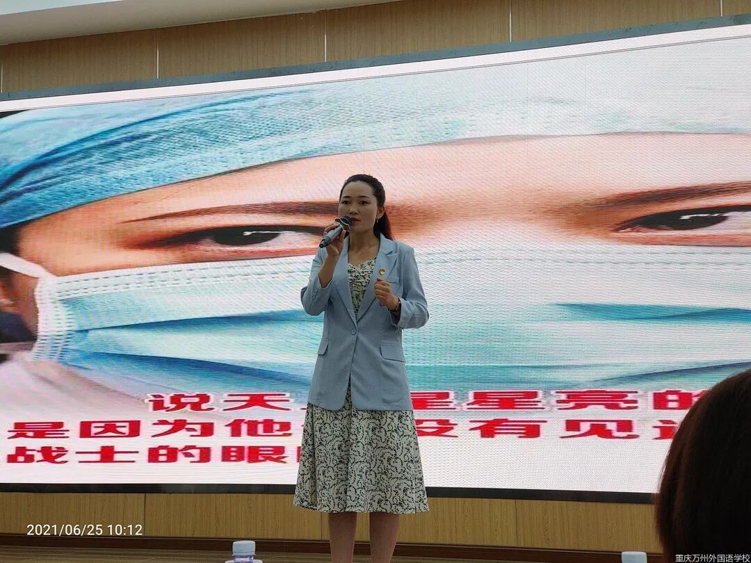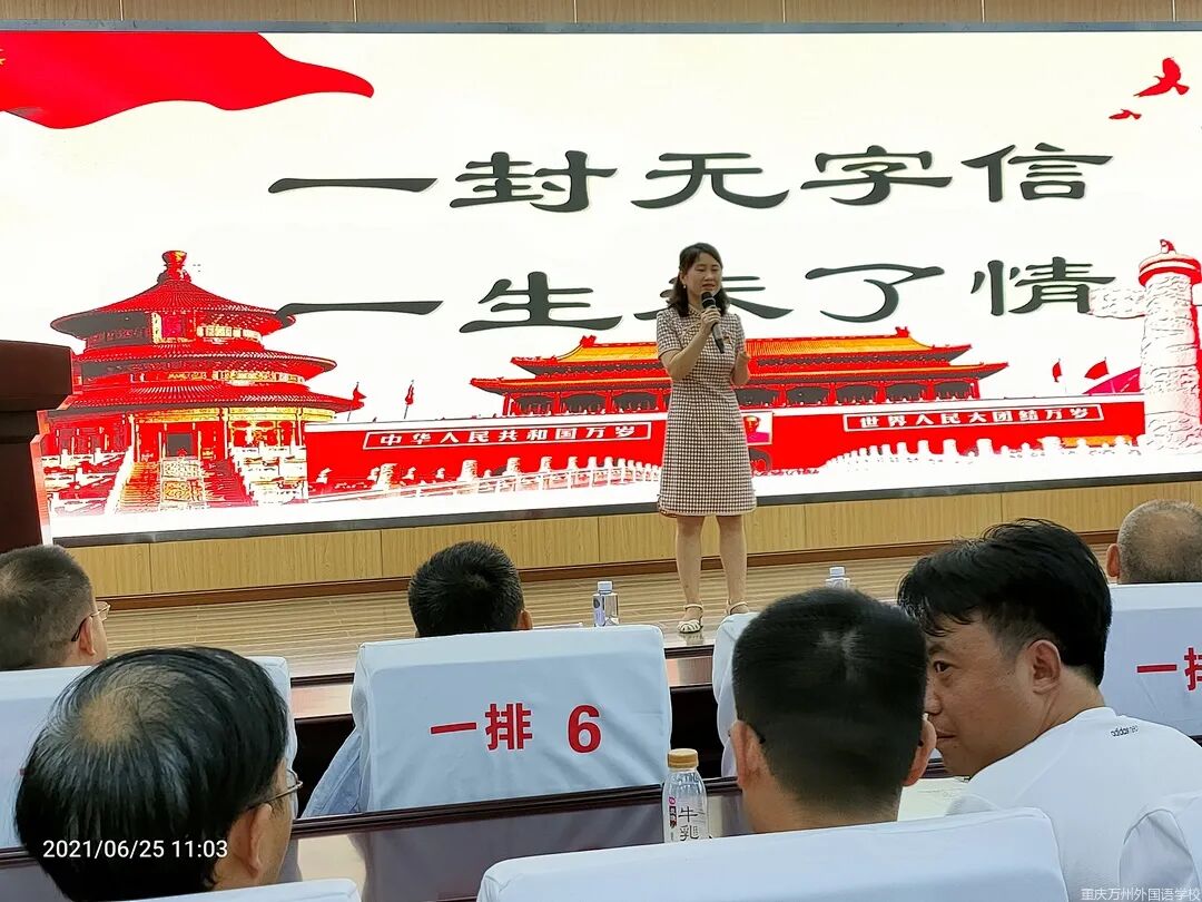 为庆祝中国共产党成立100年周年,深化党史学习教育,做到学史明理、学史增信、学史崇德、学史力行。6月25日下午,万州外国语学校党委举办了以“牢记初心使命,传承红色基因”为主题的红色故事演讲比赛。