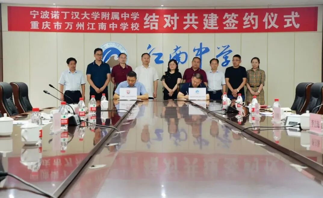 宁波诺丁汉大学附属中学与万州江南中学是三峡移民对口帮扶单位,多年来,在相互交流学习中建立了深厚的友谊和信任,为进一步落实对口支援政策,加强校际之间合作,增进两校之间友谊,共享教育资源,实现开放办学、对口交流的目标,结合两校的实际情况和前期共建形成的良好基础,经双方协商,决定开展新一阶段结对共建活动。