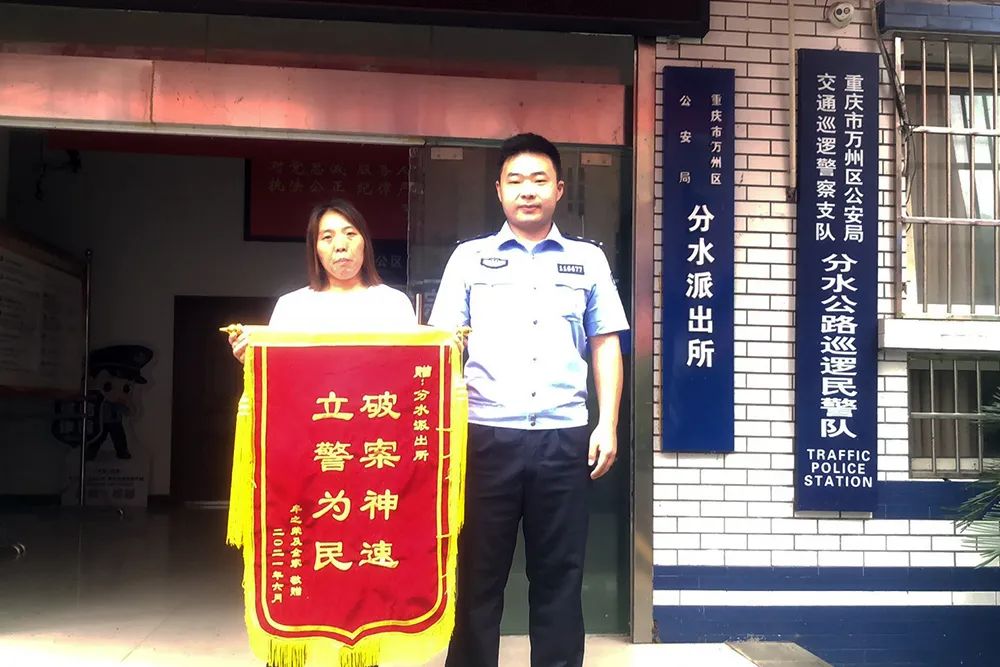 ”近日,市民牟女士将一面印有“立警为民 破案神速”的大红锦旗送到万州区公安局分水派出所民警手中。