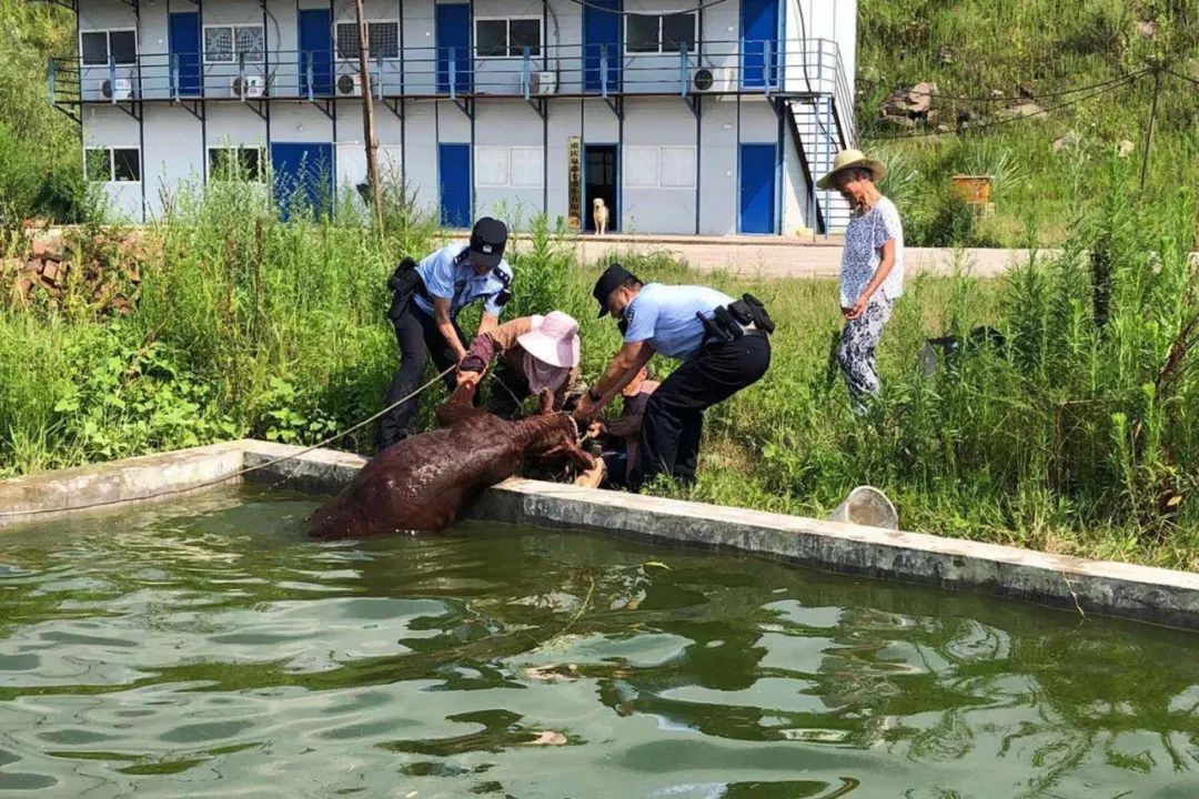 一头价值万余元的黄牛在蓄水池边喝水,不慎踩滑掉进3米深池水,情况危急,所幸民警和消防员及时赶到,“警消”联动下,成功将落水黄牛安全救出,为牛主人挽回经济损失。