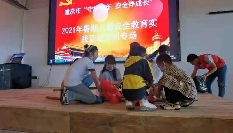 8月27日,一场别开生面的暑期儿童安全教育实践活动在万州区陈家坝街道茂合村展开,50余名孩子在家长的陪同下来到现场,在巾帼志愿者和市安全教育社会机构的带领下,开展了溺水智救、紧急求救、简易包扎等学习。