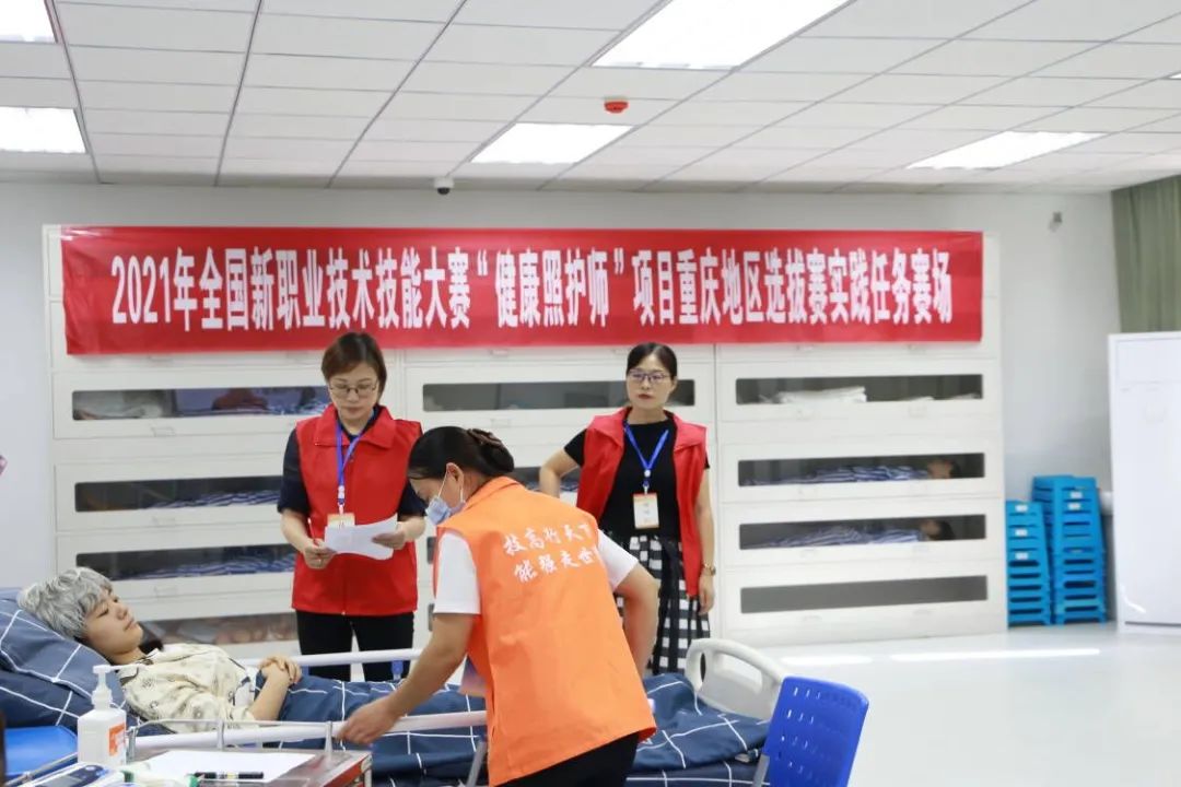 近日,由重庆市人力资源与社会保障局主办,我校承办的全国新职业技术技能大赛“健康照护师”项目重庆地区选拔赛在学校举行,来自高职院校、医院和养老机构的37名职工参加比赛。