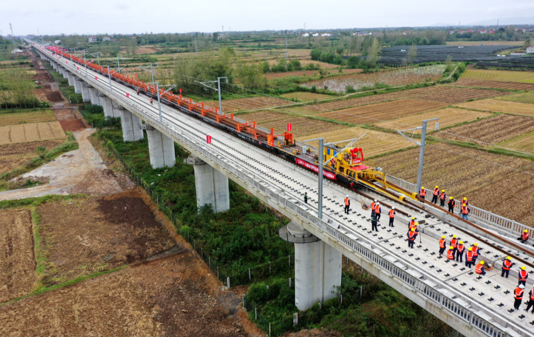 郑万高铁湖北段全面进入铺轨阶段(视界网 王虎 肖帆 摄)