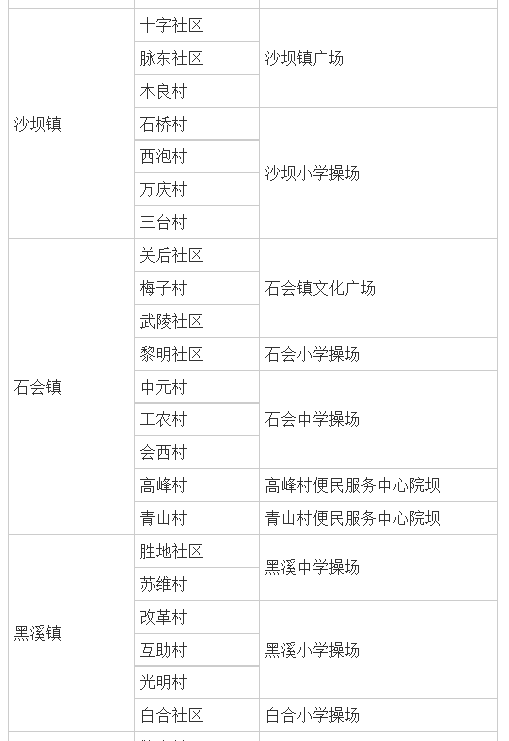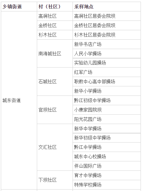 附:黔江区全员核酸检测采样地点