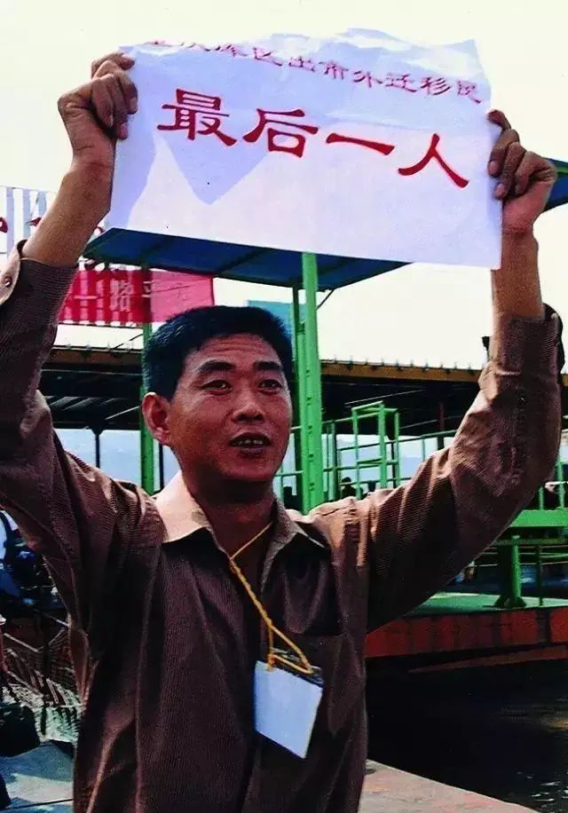 2004年8月26日11时45分,奉节港码头重庆库区移民李德兵走向移民专船,成为最后一名跨省市三峡外迁移民