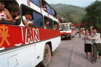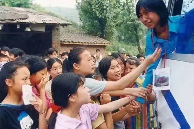 2002年6月13日清晨,重庆三峡库区云阳县外迁他乡的学生与同学们依依惜别。