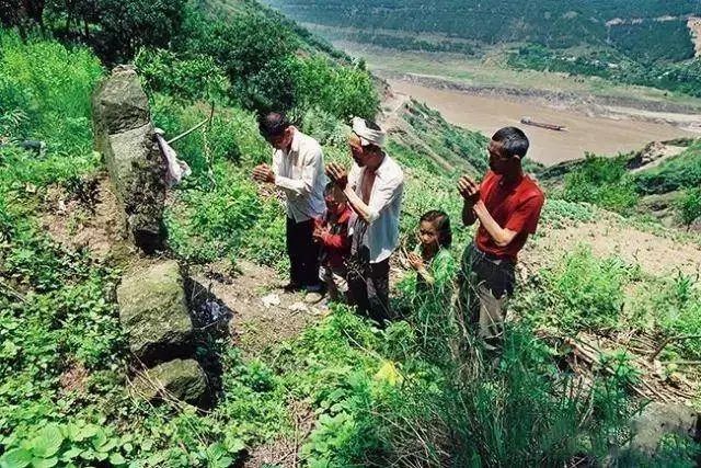 移民在搬迁前一天到祖坟做最后一次祭拜,向先辈们告别。