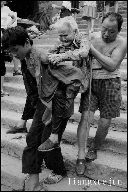 2001年重庆市巫山县大昌镇外迁移民难舍难分的情景
