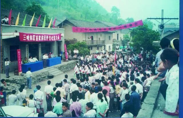 三峡库区首批移民外迁欢送大会,照片中的人们大多已经离开故土