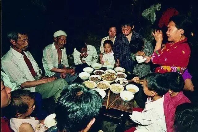 2001年5月12日晚上,三峡库区云阳外迁移民在老屋吃最后一顿团圆饭