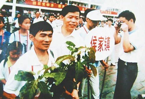 2000年8月17日,第一批三峡移民落户上海,徐继波(左一)第一个下船,踏上崇明的土地,他怀中抱着一棵来自故乡的果树。
