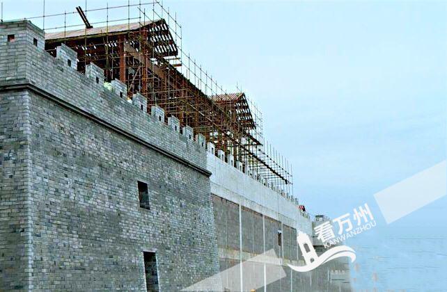 10月10日,记者在云阳县南滨路张飞庙民俗风情街建设现场看到,城墙耸立、飞檐斗拱,工人们正加紧屋面作业,街区仿古式建筑群效果初显。一条历史文化街区,以三国文化和川东古民居建筑特色为主要风格,民俗文化景观元素“风情万种”令人迷醉,一期预计在明年6月投入使用。
