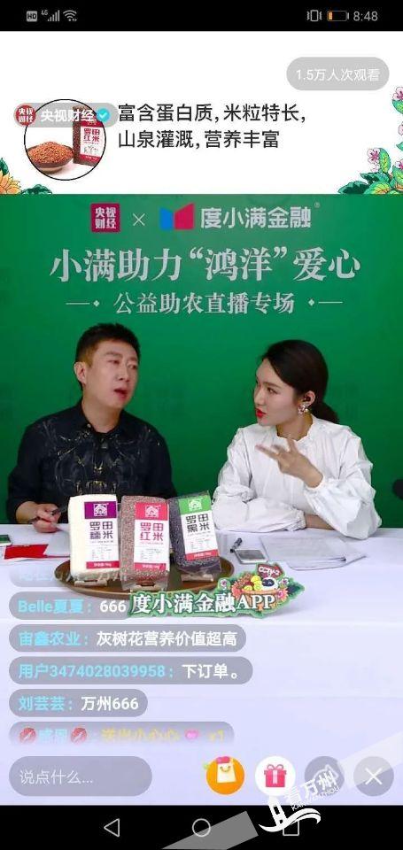 “万州烤鱼全国有名,充分借鉴了传统渝菜和火锅的用料特点,能调制出麻辣、泡椒、香辣等10多种口味,鲜嫩焦香,回味无穷,深得消费者喜爱,大家到万州了一定要去尝尝……”今年5月,由央视财经频道和度小满金融联合推出的公益助农直播专场活动,首场直播选在万州,为万州烤鱼、罗田大米、树上鲜花椒油、万州烤鱼等扶贫农产品“带货”,引来众多网友围观“下单”。