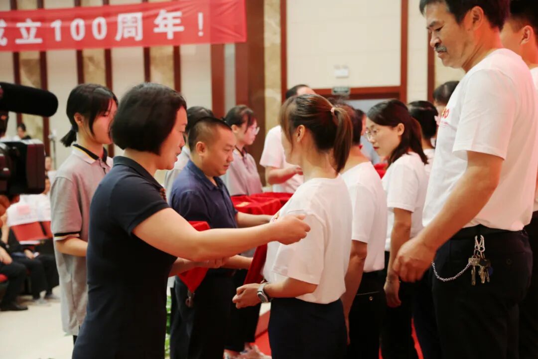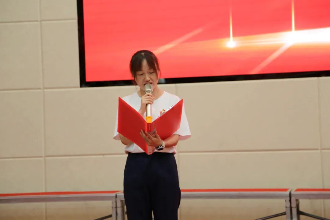 优秀党员代表陈小玲发言,愿以一颗忠心对待党的教育事业,用一件一件的小事、一点一滴的行动去践行人民教师教书育人的神圣职责,展示人民教师无私奉献的崇高师德,实现“甘将心血化时雨,润出桃花一片红”的心愿。