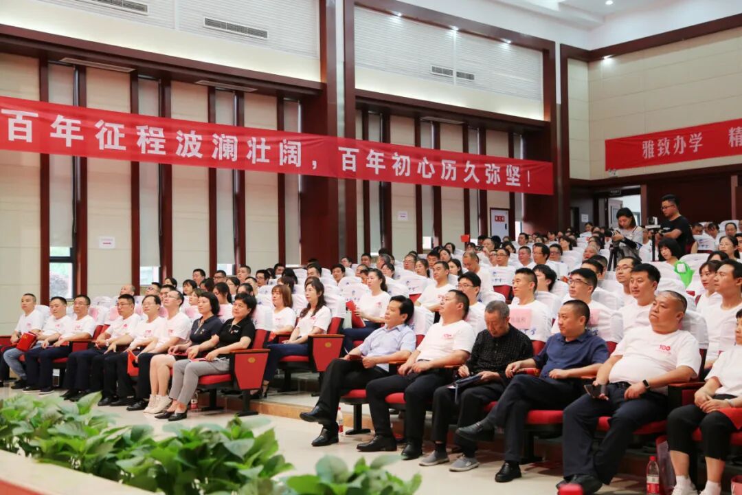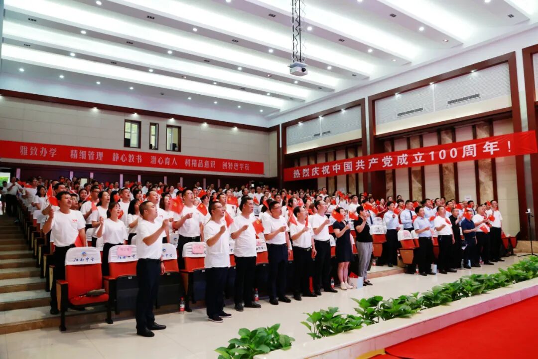 校长李吉海发表了催人奋进的致辞。他从“百年征程波澜壮阔,百年初心历久弥坚”“胸怀千秋伟业,恰是百年风华”“百年青春心向党,矢志建功新时代”等方面回顾了中国共产党带领人民群众历经千难万险,从一个胜利走向另一个胜利的光辉岁月。江南中学全体教职工不忘初心,牢记使命,秉承“钻坚仰高,弥新弥雅”的校训,在江南中学这片热土上“静心教书,潜心育人”,为实现江南中学提档升级的新跨越努力奋斗!
