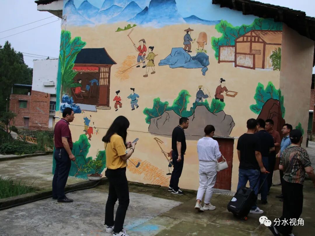 聂福朝,向大家讲述自己亲历战场上的故事,罗能平拉着老同志的手表达敬佩之意;墙面巨幅乡野油画,给院子增添了文化艺术气息;独创的簸箕绘画,装点农家住房;经过一处彩色木桥,观看凉水古井、特色蔬菜生长情况;巨幅