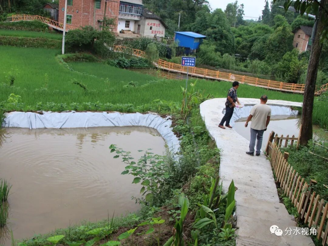 凉水湾院子,干净整洁的居住环境、高效生态农业、乡土农耕文化引起了大家的浓厚兴趣,一位居民正在给稻田里撒鱼饲料,引来无数鱼儿争抢食物,大家情不自禁停下脚步驻足观看。经过