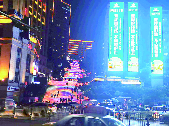 观赏城市夜色,乘船夜游平湖,流连夜市美食,滨江环湖带是最安逸的去处。为了服务夜经济,近年,滨江环湖带打造了船舶亮化工程,五艘趸船成了江上熠熠生辉的明珠。在江南江北建成“一梯七楼”灯饰工程,望江大梯道立面安装LED线条灯5400米,打造网红灯光瀑布1826平方米;驿鑫广场、冯家院等楼栋立面安装LED格栅屏、4块LED高清显示屏,展现万州地域文化和人文风情。在南滨大道和北滨大道三段打造滨江环湖灯带6公里,安装景观照明灯具931套,让河堤亮起来,让美食街、商业街更加热闹。